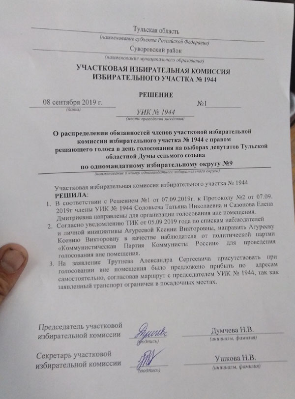 Такое огромное количество заявок на дому от количества выданных бюллетеней (49.5 % в Кулешово, 59.6% в Песоченском, 68.1% в Бряньково, 51.5% в Ханино, 76.1% в Песковатском, 63.5% в Северо-Агеевске и подобные аномальные результаты) естественно обратили на себя внимание наблюдателей, которые изъявили желание проконтролировать ход надомного голосования. Однако наблюдателям от КПРФ было отказано в их праве присутствовать с переносной урной на основании того, что еще 5 сентября на УИКи были поданы заявления от наблюдателей псевдопартии «коммунисты россии» об их желании поехать вместе с переносной урной. А больше мест в машине, по словам председателей УИКов не было. Хотя в любой легковой машине, как правило, 5 мест. На вопрос председателю УИКа 1944 Думчевой Н. В., почему в легковой машине едет только четыре человека (водитель, 2 члена УИКа и наблюдатель от «коммунистов россии»), а не пять, председатель комиссии заявила, что «у избирательной комиссии нет денег заказывать пятиместные машины».