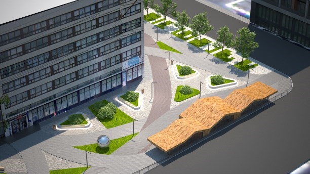 Также предполагаются работы по мощению пешеходной зоны различными видами плитки, обустройство освещения, организация газонов с посадкой деревьев, установка лавочек и урн. Будет реконструирован вход в подземный переход.