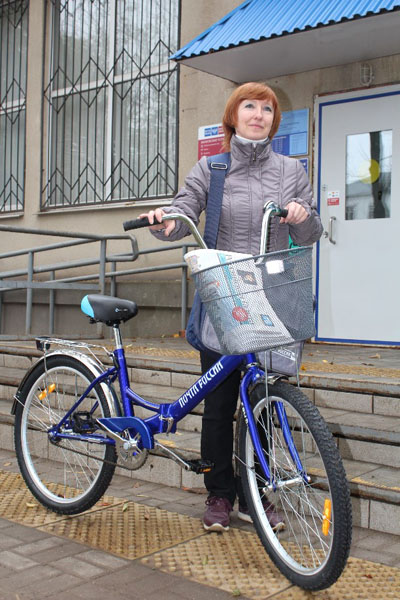 «Протяженность моего участка более 15 км, я обслуживаю жителей поселка Косая Гора. Безусловно, велосипед позволяет быстрее передвигаться по участку и больше времени уделять на предоставление дополнительных услуг и оказание посильной помощи клиентам», – рассказала почтальон Тульского почтамта Светлана Шкарубская.