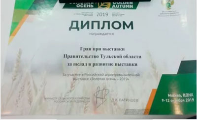 Тульская область удостоена высшей награды агропромышленной выставки «Золотая осень»