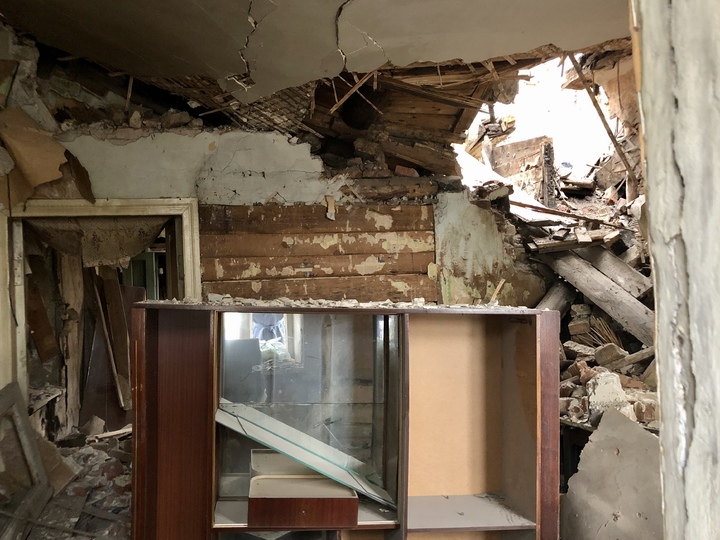 Теперь этот дом заброшен. Через разбитые стекла окон видна мебель, оставленная хозяевами и покалеченная разрухой. В зеркале полированного серванта отражается боковая стена Тульского драматического театра, расположенного через дорогу. Сверху его придавило обломками штукатурки, обрешетки потолка и деревянными бревнами верхнего этажа. Среди забытой мебели разбросаны вещи, обувь, кухонные мелочи и мусор. Складывается впечатление, что люди покинули помещения в спешке, побросав имущество. Деревянные лестницы накренились, но, кажется, еще слышен стук каблуков поднимающихся по доскам жильцов и шарканье тапочек старух, тянущих наверх ведра с водой из уличной колонки.