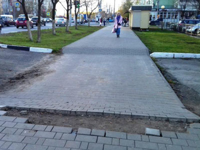 Плитка начала разрушаться больше года назад: сначала откололось несколько «кирпичиков», сейчас разрушено покрытие вдоль всей ширины дорожки рядом с домами №125 по улице Ложевая и №25 по улице Кирова. Людям с колясками и на инвалидных колясках это доставляет огромное неудобство и создаёт опасность для жизни.