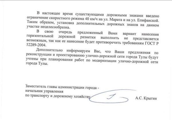 Туляки неоднократно жаловались в органы власти, однако в ответ получают лишь отписки, ГИБДД переадресовывает в «белый дом».