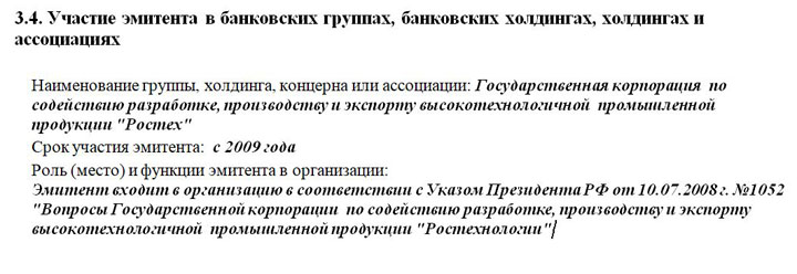 Эмитент не участвует в банковских группах, банковских холдингах, холдингах и ассоциациях (п.3.4 отчета за 1-й квартал 2019 г).