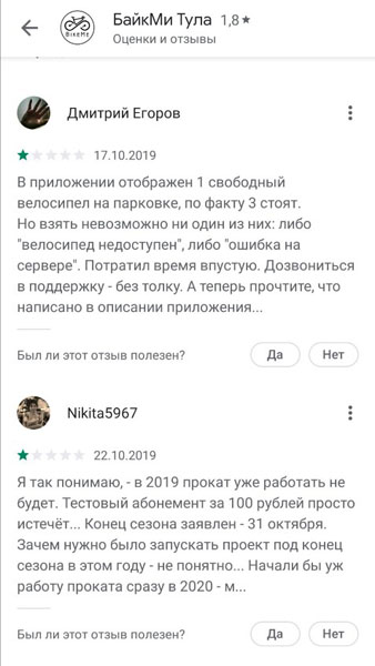 P. S. Да, отзывы про тульский велопрокат в PLay market достойно отражают все по факту.