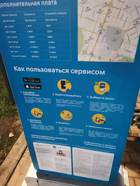 Расстроился, звоню в тех. поддержку по телефону, указанному на стенде, рассказываю свою ситуацию, а мне отвечает молодой человек, что велостанция отключена, ведется тестирование. Я уточнил какая из ближайших велостанций работает, на что получил ответ- в Туле все станции на тестировании, прокат не работает!
