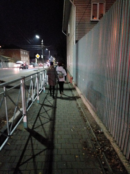 Вчера вечером шел по нечетной стороне. Навстречу шла мама с коляской. Так мне пришлось возвращаться назад к началу забора, чтобы её пропустить. Какой дебил!!! здесь так поставил забор?