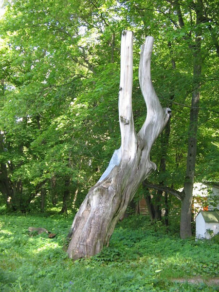 Готовую «мумию» установили под специальным навесом, напротив того самого дома, где жили любившие его люди… А в июле 2012-го налетел ураган и сломал «нетленные мощи» когда-то могучего вяза! Музейщики поахали-поохали и убрали их с глаз долой…