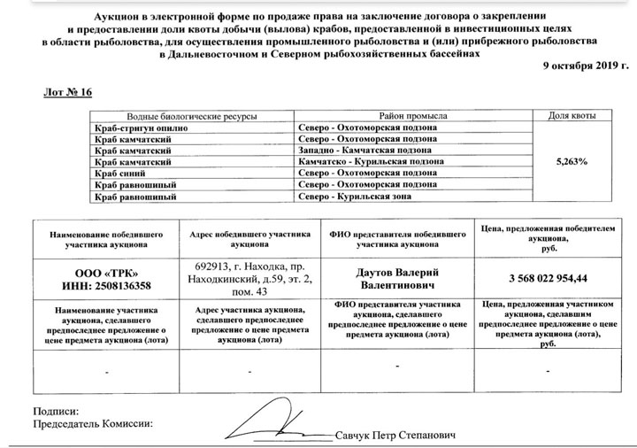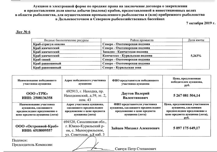 А уж потом кому-то из тульских баффетов возможно и пришла мысль, что неплохо бы к водочке добавить деликатесов. И чтобы не мелочиться, выкупили в октябре на аукционе Росрыболовства квоты на вылов краба почти за 9 млрд рублей, выиграв два лота: