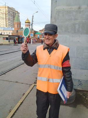 Александр Борисович Черницов — дежурный ревизор поста на улице Фридриха Энгельса. В любое время, во всякую погоду он встречает трамваи на остановке «Улица Гоголевская»: контролирует техническое состояние вагонов, следит за состоянием пути и контактной сети. Всех водителей знает в лицо и свидетельствует: сегодня в этой профессии довольно много молодых.