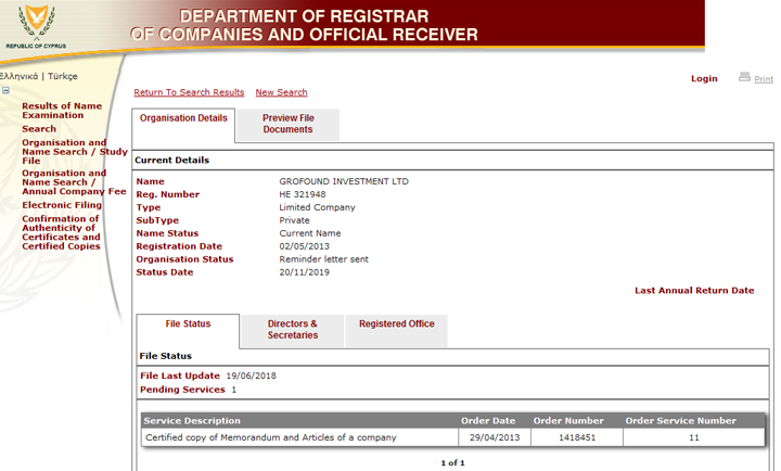 А вот здесь, можно посмотреть изменения, происходившие в компании GROFOUND INVESTMENT LTD до последнего времени:
