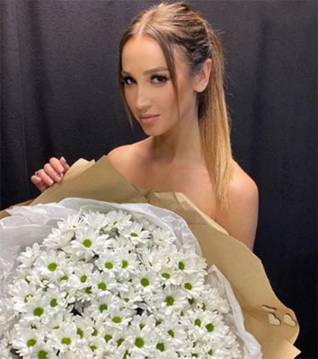 Певица прикрыла интимные места огромным букетом ромашек