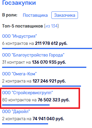 Почетное 4 место в рейтинге поставщиков могущественного АО «Спецавтохозяйство» занимает некое ООО «Стройсервисгрупп»: