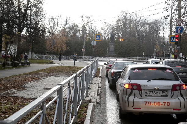 Туляки, невзирая на ограждения, переходят проспект так, как им удобно – кто-то по прямой, а кто-то наискосок, благо светофор для пешеходов горит долго и во всех направлениях одновременно. Зачем тут ограждения, ведь перекресток несколько лет назад специально отремонтировали, сделав заниженные бордюры и отрегулировав светофор на Х-образный переход? Оказалось, что этот перекресток находится в определенной близости от школы №20. И по требованиям ГОСТа должен быть огорожен.