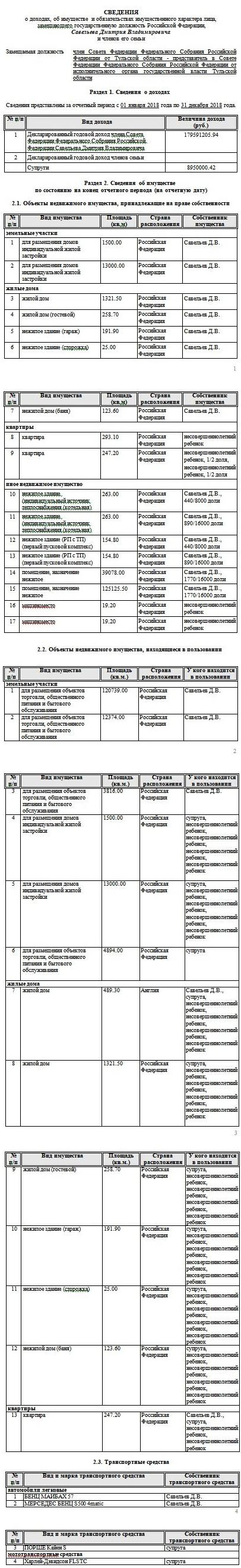 Он занял 79-е место по размеру доходов в 2019 году. Семейный доход Савельева превысил 188 млн рублей.