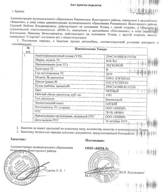 «На общественных слушаниях, мы задали вопрос главе администрации МО Ревякинское Суровой Л. В., из каких средств были выделены деньги на приобретение этого дорогостоящего автомобиля, на что получили следующий ответ: „В 2019 году сотрудниками администрации была проведена огромная работа по продаже бесхозных земель на общую сумму 3 700 000 рублей, и приобретение данного автомобиля я считаю достойным поощрением их работы“.