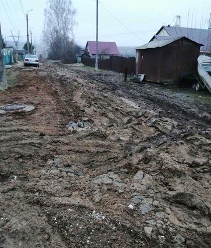 На территории частного сектора отсутствует дорожное покрытие. В осенний период проезд и подходы к домам превращаются в сплошную грязь.