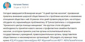 Упомянула депутат и акцию «16 дней против насилия», — такое название ей дали в Тульской области. На самом деле акция называется «16 дней активизма против гендерного насилия» — всемирная акция ООН.