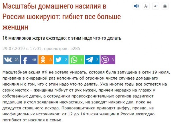 Обратим внимание на то, как начиналась раскрутка темы о домашнем насилии в 2019 году в прессе :