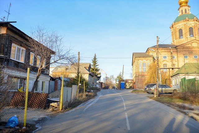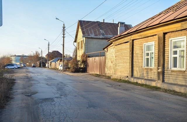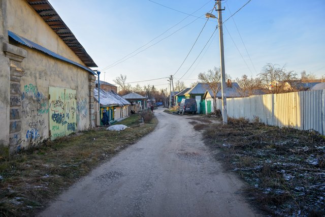 «Я здесь хожу, когда внука из школы забираю, – рассказывает Василий Яковлев. – Сейчас подморозило, дорога стала плотной. А чуть подтает – сплошное месиво. Тут ведь даже асфальта нет! Насыпано непонятно что – якобы дорога, радуйтесь. О тротуарах и говорить нечего. Идёшь по дороге для машин – вязнешь в грязи, идёшь рядом – вязнешь в траве. Дома утопают в земле. Здесь стоит здание с облезлой табличкой «Дом образцового содержания». Прочитать надпись сложно, краска на доме кусками, окно разбито, рамы трухлявые».