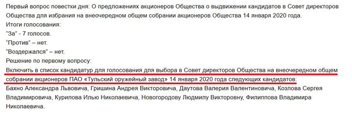 Да, именно сегодня,14 января 2020 года, на внеочередном акционерном собрании Тульского оружейного завода «эффективные менеджеры» Ростеха, которые все последние годы принимали активное участие в работе совета директоров ТОЗа, уступают свои места гражданам, по крайней мере, формально не связанным с оборонным холдингом: