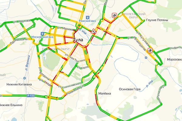 Ситуация на дорогах, согласно данным «Яндекс.Карты», весьма напряженная. В центре Тулы движение парализовано из-за аварии на улице Советской в районе поворота на Красноармейский проспект. Кроме того, затруднено движение по улице Мосина, Демонстрации и Фридриха Энгельса.