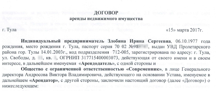 А теперь давайте посмотрим, сколько же платит ООО «Современник» госпоже Злобиной за месячную аренду этого участка: