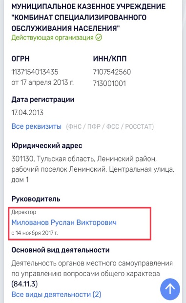 1.11.2016 г. когда он [Милованов] уже являлся директором МКП «КСО», будучи муниципальным работником, не мог состоять в органах управления и быть учредителем коммерческих предприятий, в налоговом органе регистрируется ООО «Эко-центр», где учредителем и генеральным директором является отец Милованова Р.В, Милованов Виктор Петрович.