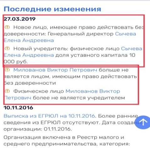 Но… Не тут то было. 27 марта 2019 г. отец Милованова Р.В. Милованов В.П. перестает быть директором и учредителем ООО «Эко-центр», а вместо него им становится – не поверите – дочь Сычева А.С., Сычева Елена Андреевна. Связь Милованова Р.В. и Сычева А.С.,безусловно, подтверждается. Но это только начало. Идем далее.