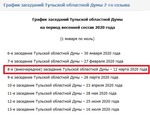 Однако, по нашей информации, помимо федеральной повестки еще одним важным вопросом на данном заседании будет внесение изменений в Закон Тульской области «О бюджете Тульской области на 2020 год и на плановый период 2021и 2022 годов».