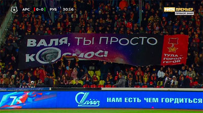 [14 марта] на матче «Арсенал» – «Рубин» в Туле появился необычный баннер. Вы наверняка заметили его, даже если смотрели игру по ТВ.
