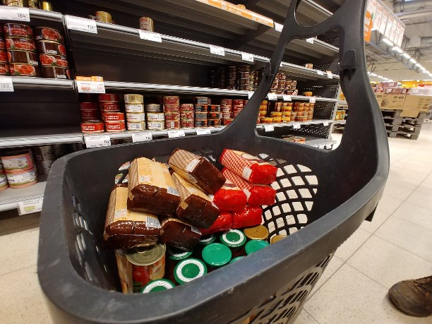 «Меня мама попросила набрать. Не мог же я ей отказать», — смущенно прокомментировал стоящий у изрядно поредевшей витрины с тушенкой молодой человек, у которого в корзине лежали пять пачек риса, столько же гречки и еще два десятка банок с овощными консервами.