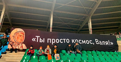— Во время матча болельщики тульской команды развернули баннер с изображением героя Советского Союза и первой в мире женщины-космонавта Валентины Терешковой с надписью «Валя, ты просто космос».
