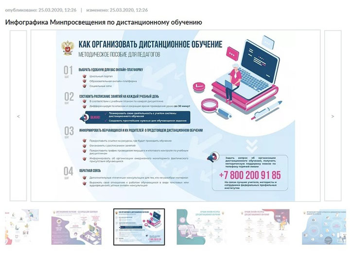 На официальном сайте регионального министерства образования размещена только инструкция к «Российской электронной школе», подслеповатая и почти не читаемая инфографика, как родителям и учителям работать дистанционно.
