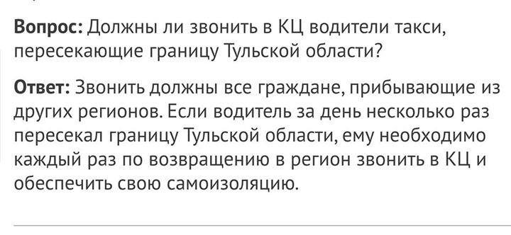То есть, таксист вполне может заработать себе на пожизненное? Интересно, чиновники и т.п. ездят сейчас в москву? Они тоже самоизолируются на 2 недели? А машинисты и бригады поездов, электричек, автобусов, маршруток? А водители грузовиков, которые привозят из москвы продовольствие? Они тоже должны самоизолироваться после каждого рейса на 2 недели. Или они не подвержены заражению вирусом? Интересно, почему только из москвы, а люди, приезжающие с других направлений? Или у нас уханьвирус только в москве? Опасные пассажиры могут ступить на тульскую землю во время стоянок проходящих поездов и автобусов. Страшно сказать, плюнуть или бросить окурок! Кадыров на пасху вообще запретил чеченцам выходить на улицу. И что, заражение только выросло. А как влияет запрет строительства и продажи строительных материалов? Вместо работы люди пойдут в магазин и напьются. Это прибавит здоровья им, их семьям и окружающим? Уже стоят около магазинов и просят деньги. И по … им уже любой вирус.