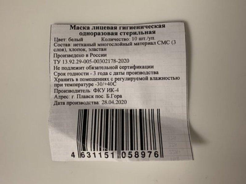 Жители региона обнаружили в продаже маски с приложенной информацией о производителе. Согласно этой информации, упаковки количеством по 10 штук производят в плавской исправительной колонии №4.
