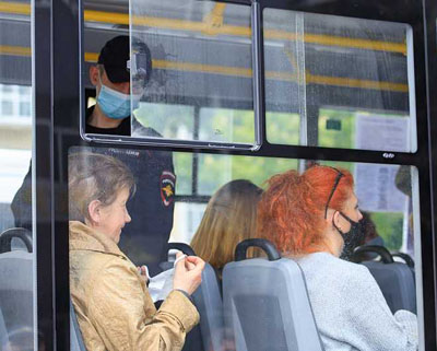 На дверях или окнах некоторых автобусов и маршрутных такси красуются яркие знаки, обозначающие запрет на вход в салон без защитных средств, однако многие пассажиры и даже водители этим правилом пренебрегают. Также часто люди берут с собой маски, но не всегда ими пользуются. В таких случаях патрульные просят надеть защиту и предупреждают о возможном штрафе за несоблюдение указа губернатора.