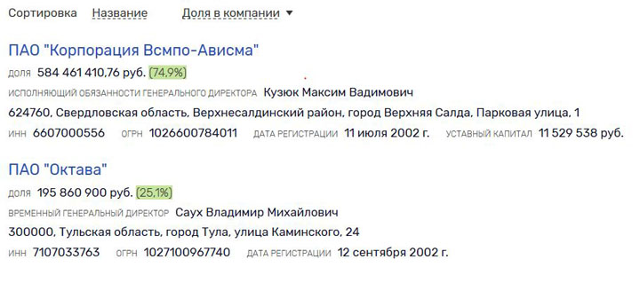 Обратимся к отчетности другого учредителя ООО «Октава» — ПАО «Корпорация ВСМПО-АВИСМА». В отличие от ПАО «Октава» с экспортом менее 1 млн долларов производитель титана получил в 2019 году выручку от экспорта около миллиарда долларов. Поэтому добросовестно подготовленная отчетность является необходимым условием для продолжения успешного бизнеса ВСМПО-АВИСМА.