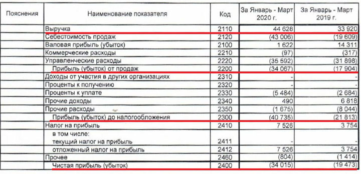 15 июня ПАО «Октава» разместило отчетность за 1-й квартал 2020 года, и опять — многомиллионные убытки:Причем коронавирус в убытках за 1-й квартал не виноват, ведь выручка по сравнению с аналогичным периодом прошлого года выросла более чем на 30%. Но при этом почти в 2 раза вырос и убыток, почти сравнявшись с выручкой. Выручка составила 45 млн рублей, а убыток – 41 млн рублей…