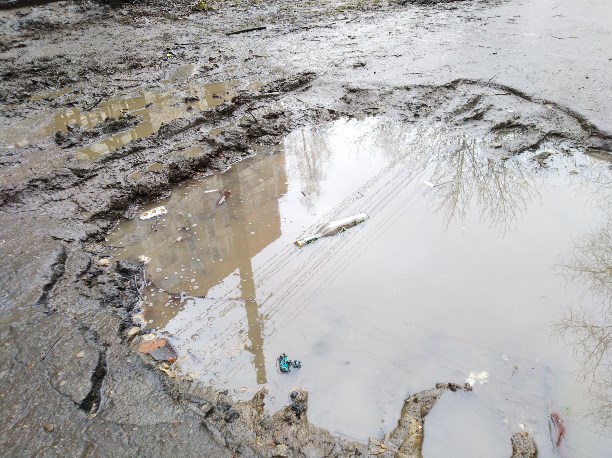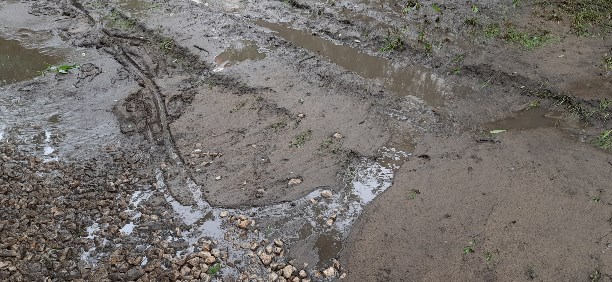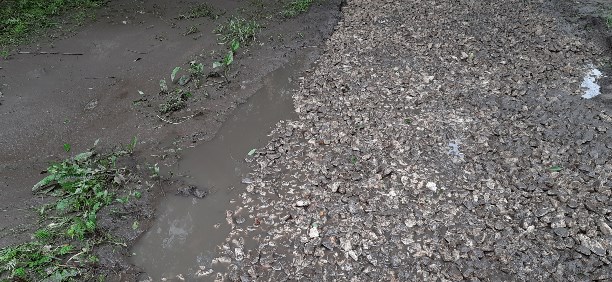 Вода с очень большой площади собирается на этом участке, куда некто пытается набросать пару горстей щебёнки и отчитаться о проделанной работе.