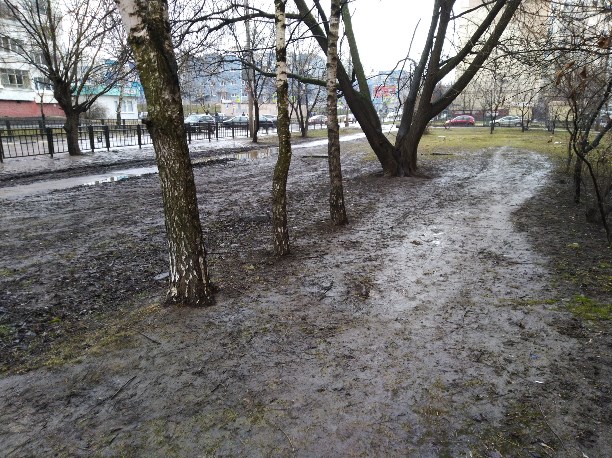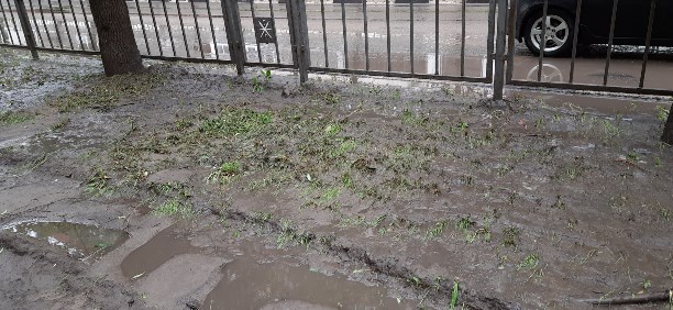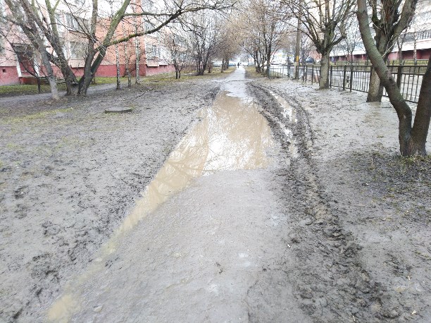 Техника, привозившая щебёнку, а также чистящая тротуар убивает газон (смотрите фото выше по тексту, там следы колёс, после слов «Впрочем, щебёнку накидали даже не везде»).