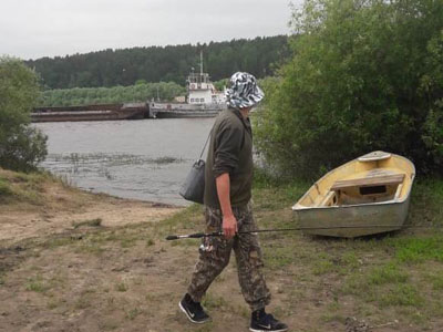 Лодка на берегу Оки у Егнышевки оказалась не у дел. Рыбачки вынуждены сушить весла и удить у берега из- за раскорячивавшихся чуть ли не во всю ширину реки от тульского до калужского берега драги, добывающей песок, и баржи.