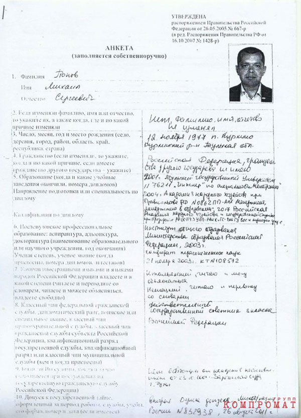 Но это не помешало Попову устроиться на госслужбу и занимать высокие должности, вплоть до поста помощника вице-премьера Ольги Голодец. В последующем вице-премьер оказывала протекцию Михаилу Попову, который работая в Минобрнауки, научился зарабатывать миллионы на заключении госконтрактов с «карманными» коммерческими структурами.