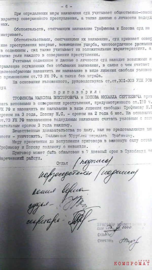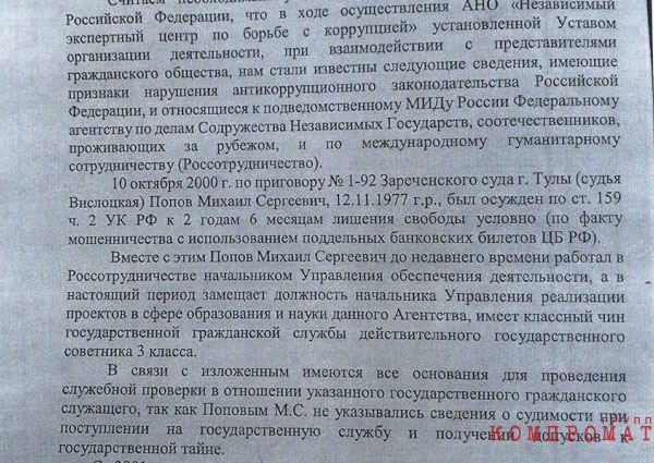 Между тем, имя Михаила Попова может оказаться знакомо силовикам. Дело в том, что еще в 2000 году, будучи студентом Тульского госуниверситета, он получил судимость за мошенничество с использованием поддельных денежных знаков. Проще говоря, оказался фальшивомонетчиком.