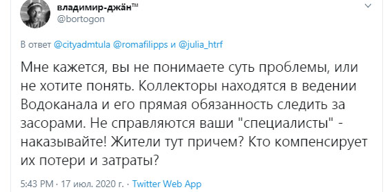 См. также: «Тулагорводоканал» шлет фекальный привет жителям улицы Тупик Реки Воронки