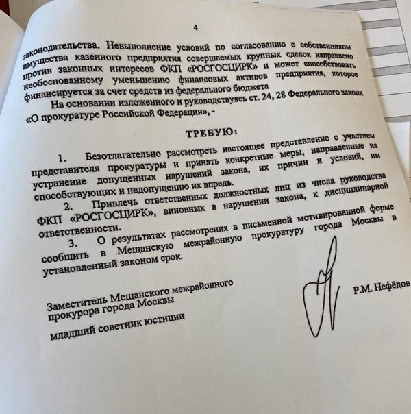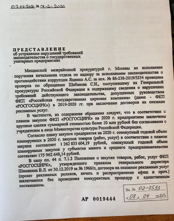Прокуратура установила факт очередной растраты бюджетных денег Росгосцирком, а именно его главой — Шемякиным Владимиром Леонидовичем.