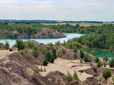 От Тулы до деревни Кондуки — 80 км по хорошей дороге и ещё около километра по накатанному грунту. Картинка меняется практически мгновенно: скромная среднерусская природа уступает место горному пейзажу, под которым раскинулись десятки озёр ярко-бирюзового цвета. Поднимаешься на самый высокий «горный отвал» — дух захватывает, такая красота! Будто ты не просто за пределы родного региона выехал, но улетел на другую планету…