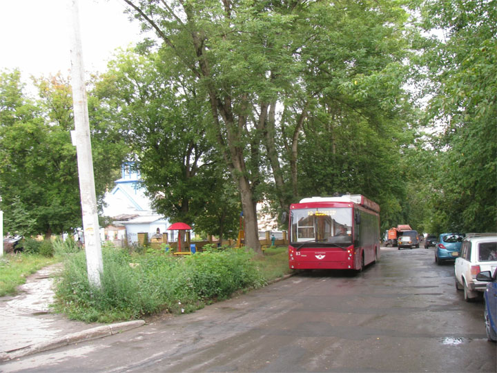 Конечная — поселок Косая Гора, сюда троллейбусы ездили на АХ, контактная сеть в поселке отсутствует, 02.09.2015
