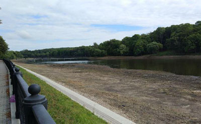 Недавно пруд в городском парке сильно обмелел – вода «ушла», обнажив дно. Местные жители связывают это с реконструкцией расположенной на водоёме плотины.