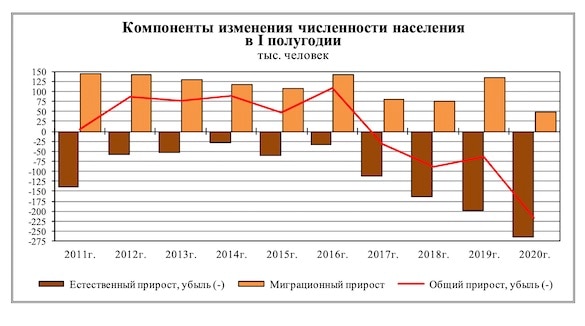 По данным Росстата, за январь-июнь в России родились 681 тысяча детей — на 38,7 тысячи, или 5,2% меньше, чем за тот же период прошлого года. Смертность увеличилась на 28 тысяч человек, до 946,5 тысячи. Таким образом, естественная убыль достигла 265,5 тысячи человек, на треть превысив прошлогодний показатель, ставший рекордным за последние 11 лет.